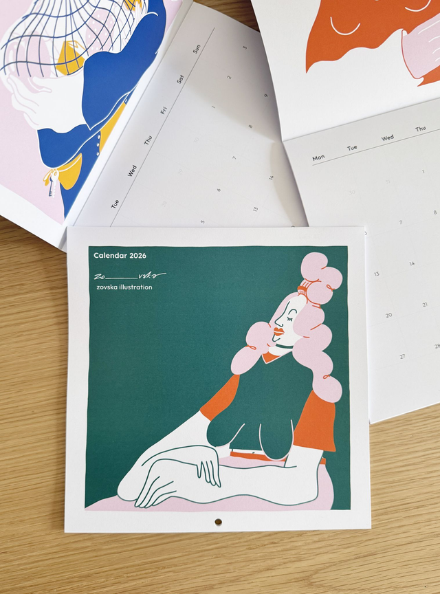 Illustrated 12-month Wall Calendar for 2026.